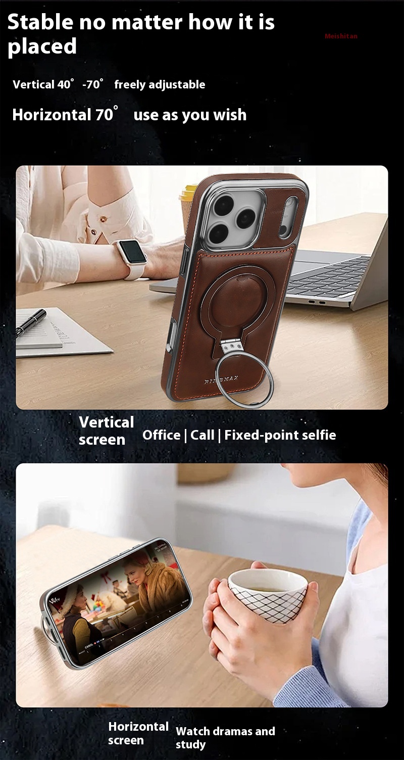 17promax Bracket Magnetic Drop-resistant Leather Case Phone Case